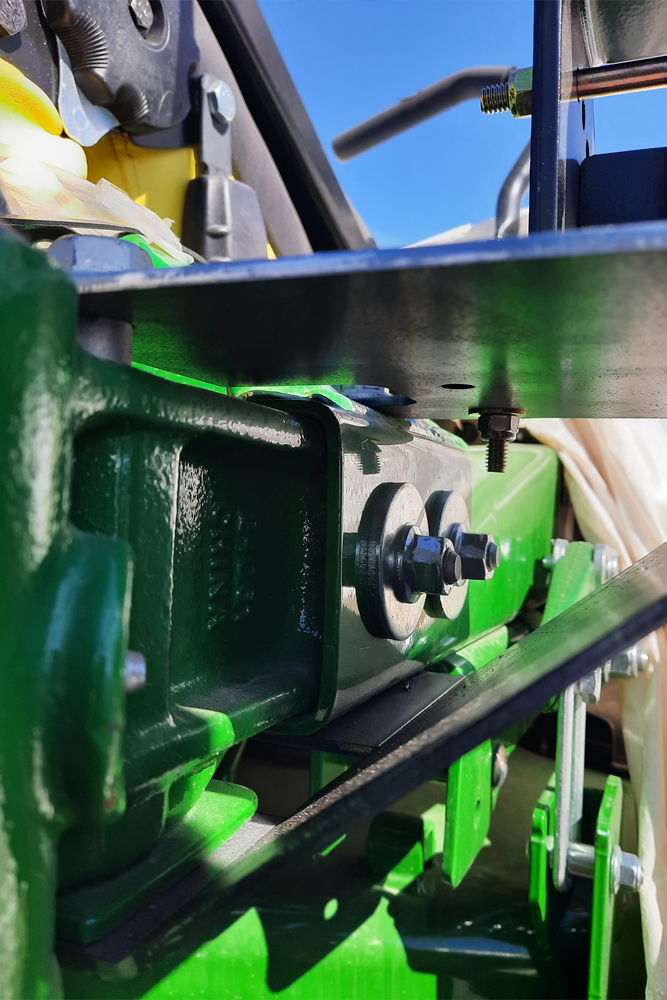 mounting bracket designed to not interfere with the new flip up easy access foot deck on the 900 series zero turn mowers.